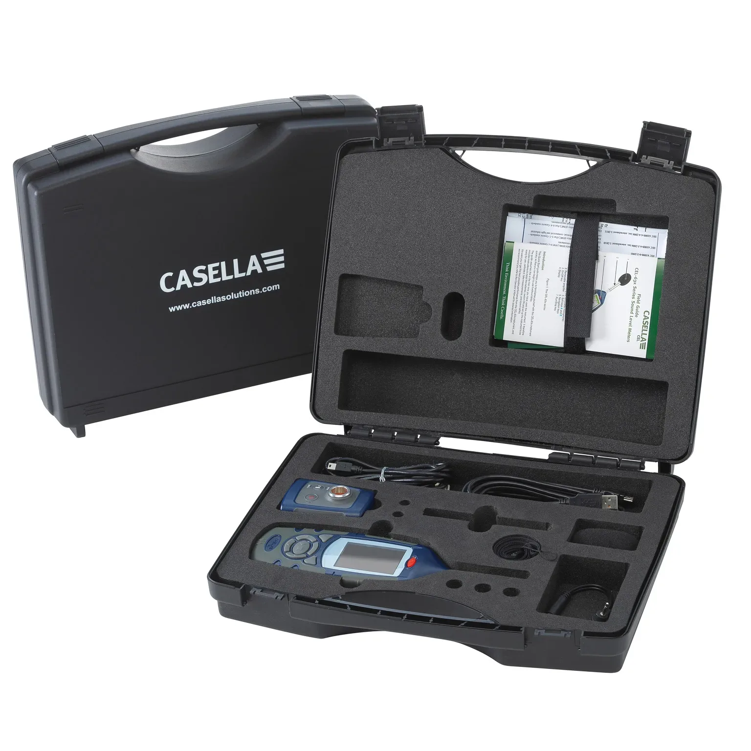 Complete kits are available with acoustic calibrator (CEL-120), kit case, windshield, instruction manuals and USB cable. For a complete instrument kit add /K1 to the part number e.g. CEL 620A2/K1. A typical instrument kit is pictured below.